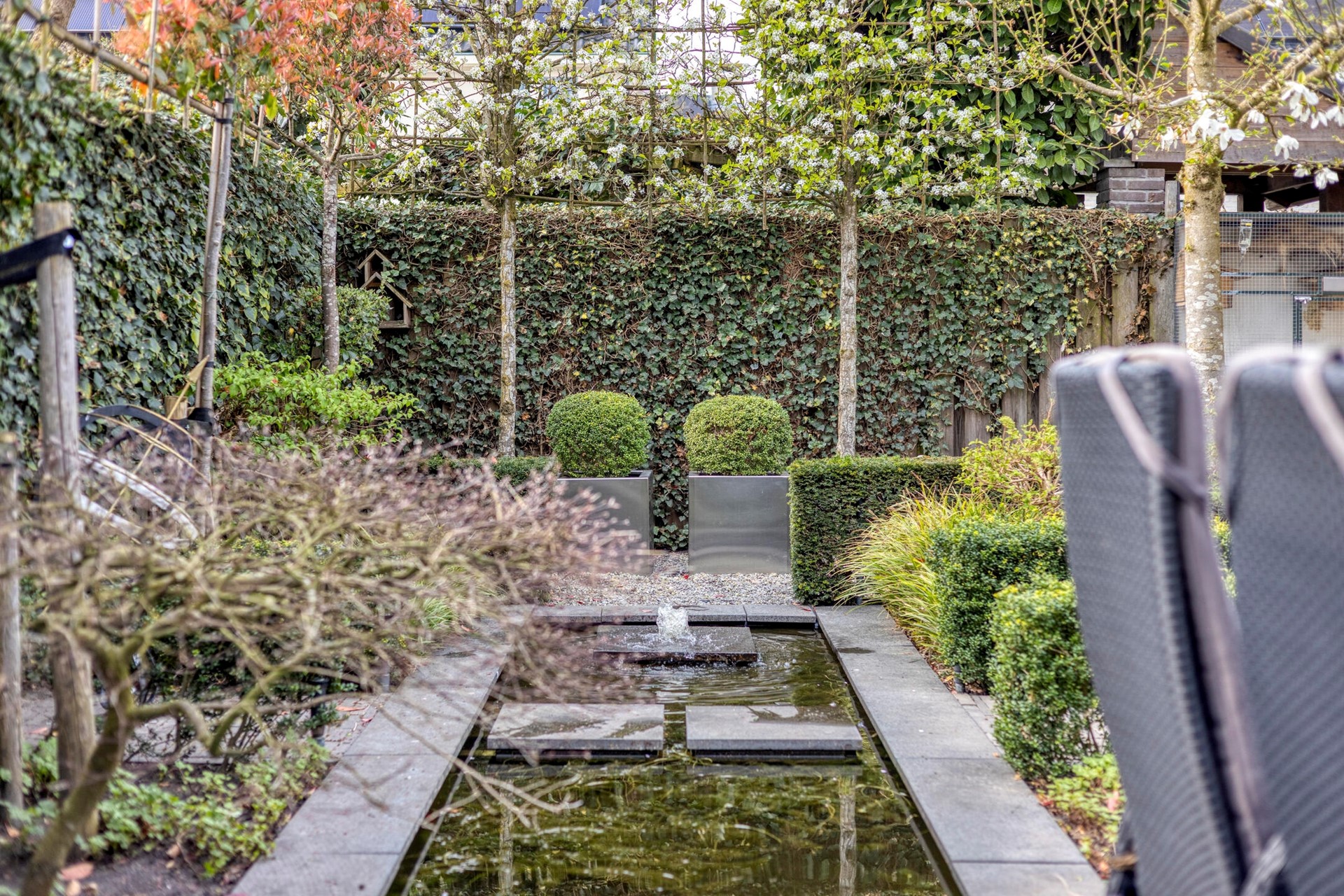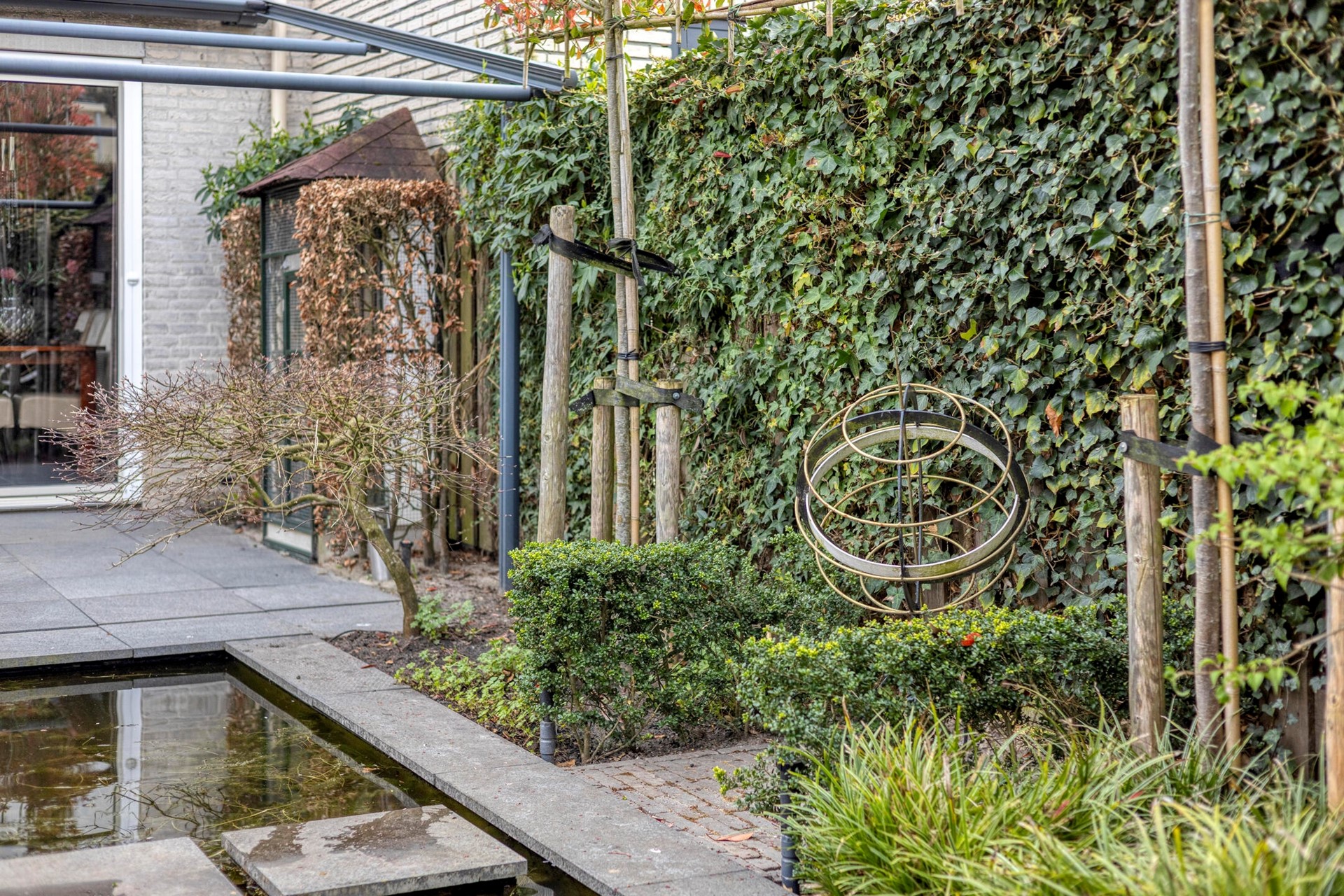 De fraai aangelegde achtertuin is gelegen op het noordwesten en biedt een heerlijke plek om te ontspannen en te genieten van het buitenleven. De tuin is zorgvuldig ontworpen en beschikt over meerdere terrassen, waardoor er altijd een fijne zitplek in zon of schaduw te vinden is. De borders met vaste beplanting en de sierlijke vijver geven de tuin een groene en sfeervolle uitstraling.