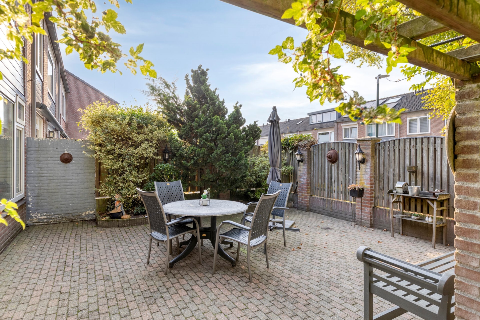 De woning beschikt over een ruime voortuin met twee stenen bergingen, ideaal voor opslag of als hobbyruimte. De achtertuin ligt op het noordwesten, waardoor je in de middag en avond van de zon kunt genieten. Dankzij de vrije ligging aan een park en het besloten karakter biedt de tuin veel privacy. De tuin is sfeervol ingericht met een terras en groene borders, en is verder uitgebreid met een zijtuin, waardoor er nog meer buitenruimte is om te genieten. Doordat de bergingen zich aan de voorzijde bevinden, kan de achtertuin optimaal worden benut.