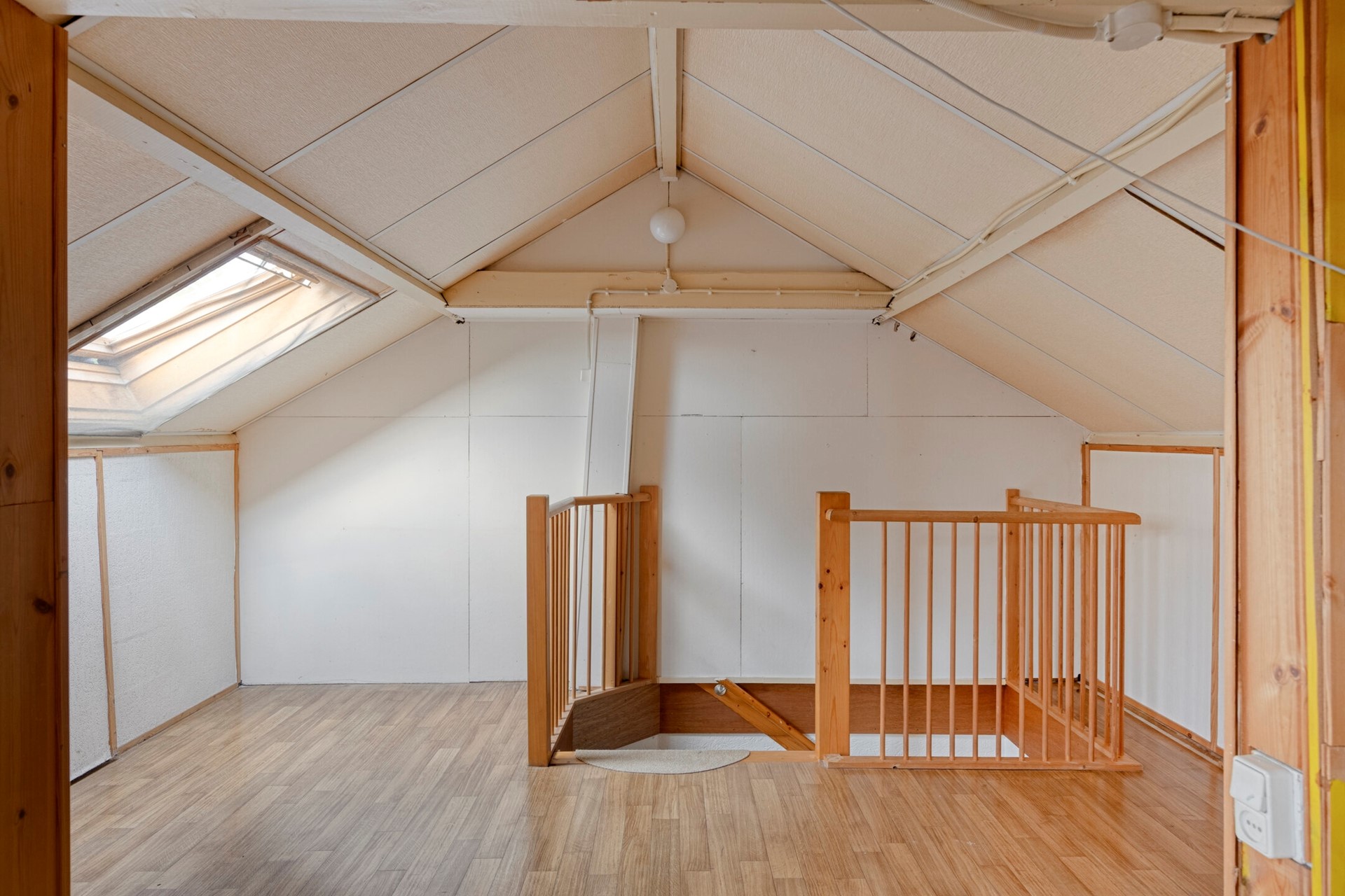 Via een vaste trap bereik je de zolder. Deze verdieping is momenteel één grote open ruimte met een houtlook vinylvloer, twee dakramen en knieschotten die zorgen voor extra bergruimte. De ruimte biedt volop mogelijkheden: hier kun je eenvoudig een vierde slaapkamer, een fijne werkkamer of een hobbyruimte creëren. Ook is hier de c.v.-combi-ketel (2022) geplaatst.